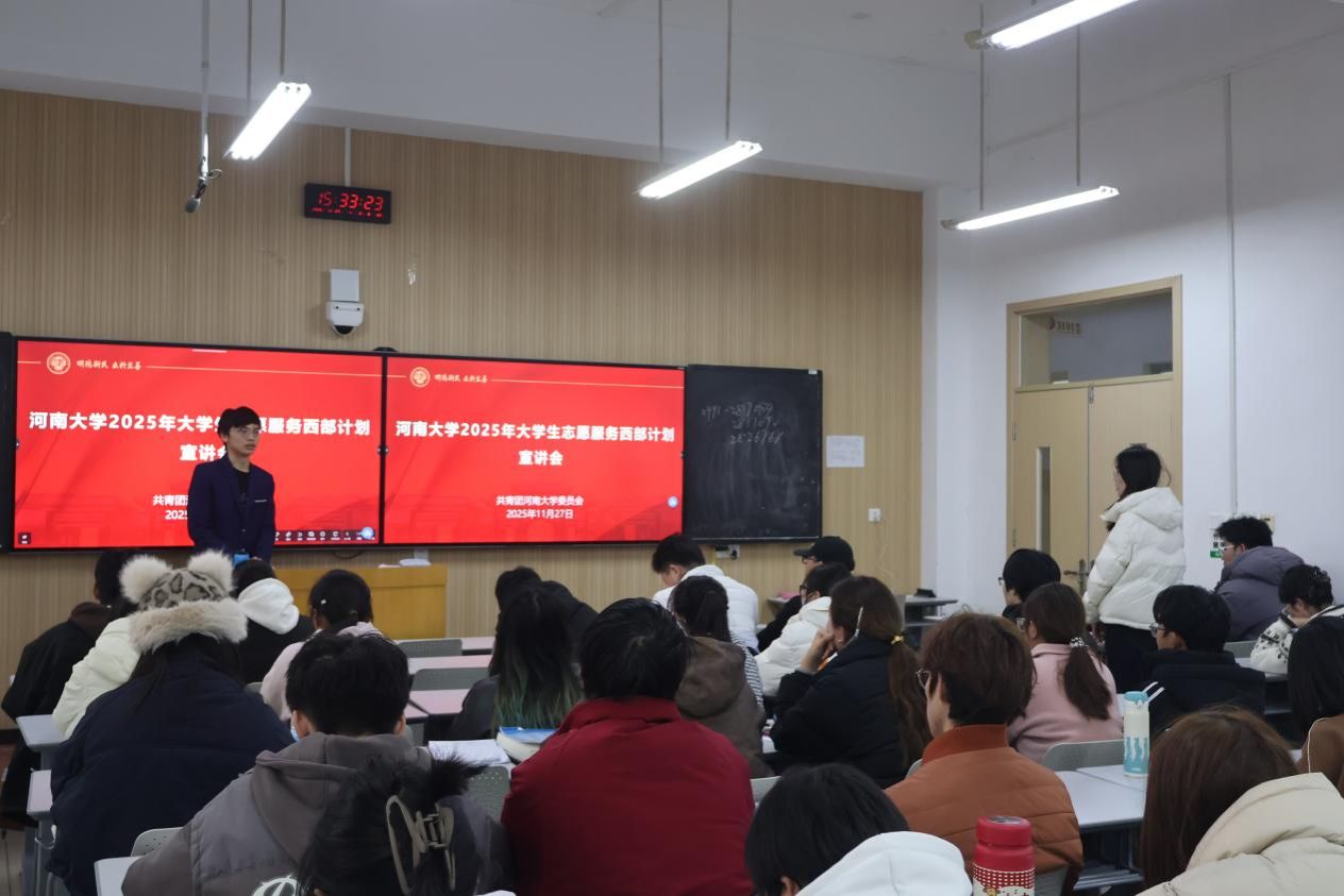 本次宣讲会由共青团M88helper委员会组织,是我校共青团系统深化实施“大学生志愿服务西部计划”的重要举措,也是学校“知行·报国”青年大讲堂系列活动之一。长期以来,校团委始终将西部计划作为服务国家人才战略、引导青年扎根基层的重要政治任务与育人载体,通过精心组织招募、强化政策宣传、树立先进典型等一系列扎实举措,累计选派300余名毕业生奔赴西部建功立业。未来,校团委将持续以“知行·报国”大讲堂为核心阵地,深化校地协同与全程赋能,激励更多河大青年以梁熠这样的优秀志愿者为标杆,在西部基层的火热实践中书写别样精彩的青春华章。